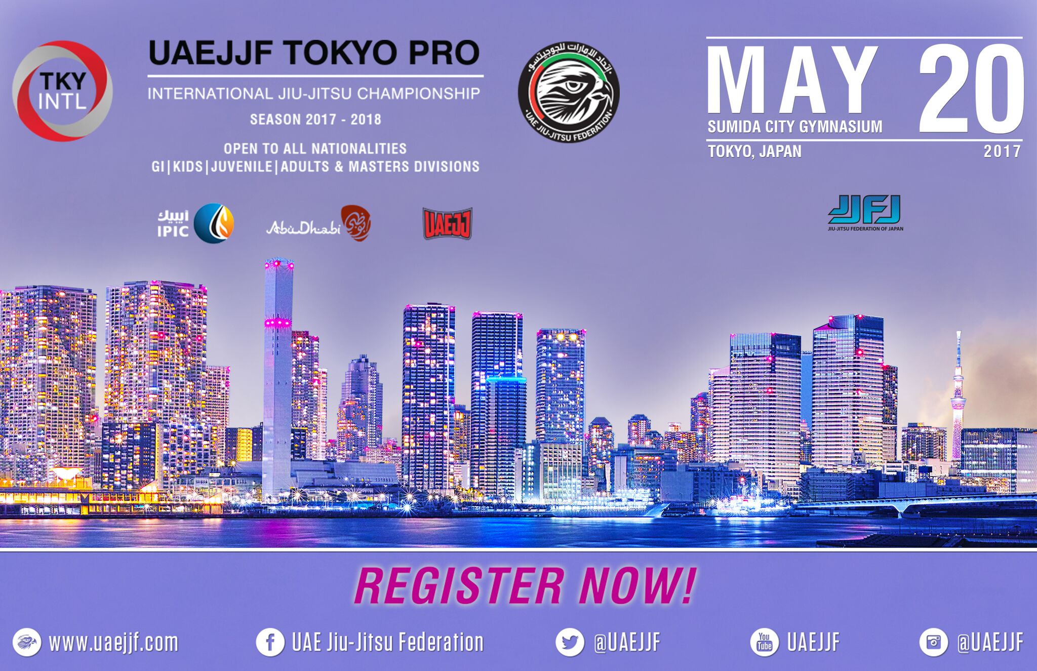 以下の階級の優勝者には7月15日に幕張メッセにて開催されるアブダビ・グランドスラム東京柔術大会への参加費が免除、そして宿泊が(大会前日のみ)提供されます。(無差別級に参加するためには階級別で、3位以内に入賞された選手のみの参加が可能。)