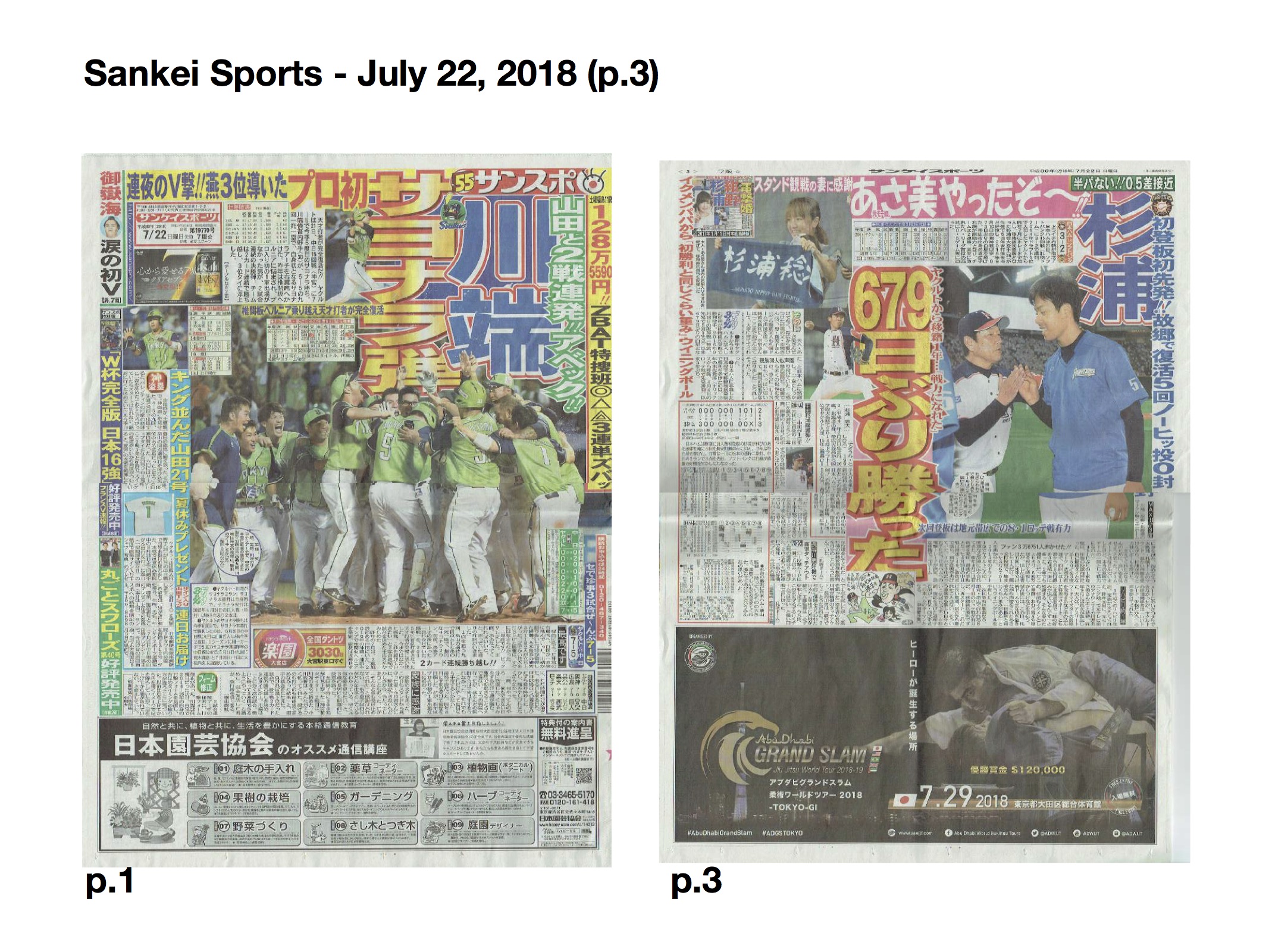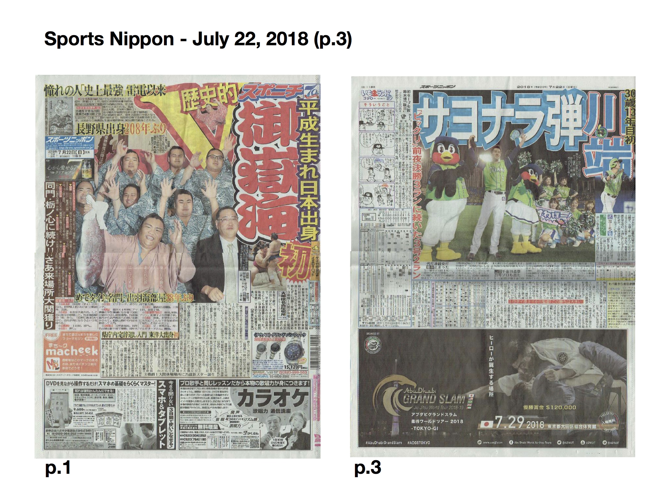 アブダビ・グランドスラム東京2018がサンケイスポーツとスポニチの新聞広告に掲載されました。